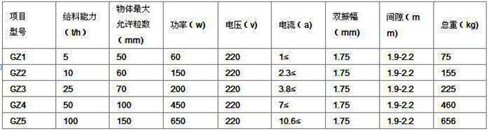 | 型號  | 處理量  | 給料粒度  | 振幅  | 電壓  | 工作  | 功率  | 重量  | |